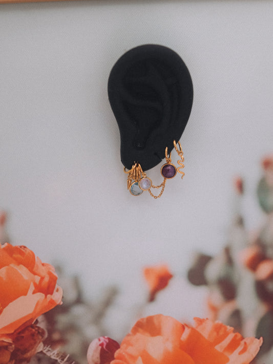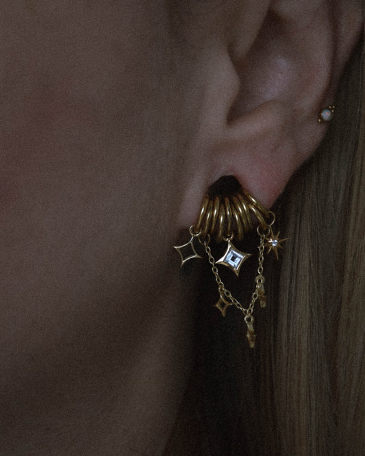 I was so excited to see this collection released. It matches my aesthetic perfectly. This chain specifically fits perfectly on my higher lobe piercings. Very light weight and doesn't drag my ear at all. Super high quality and packaged beautifully.