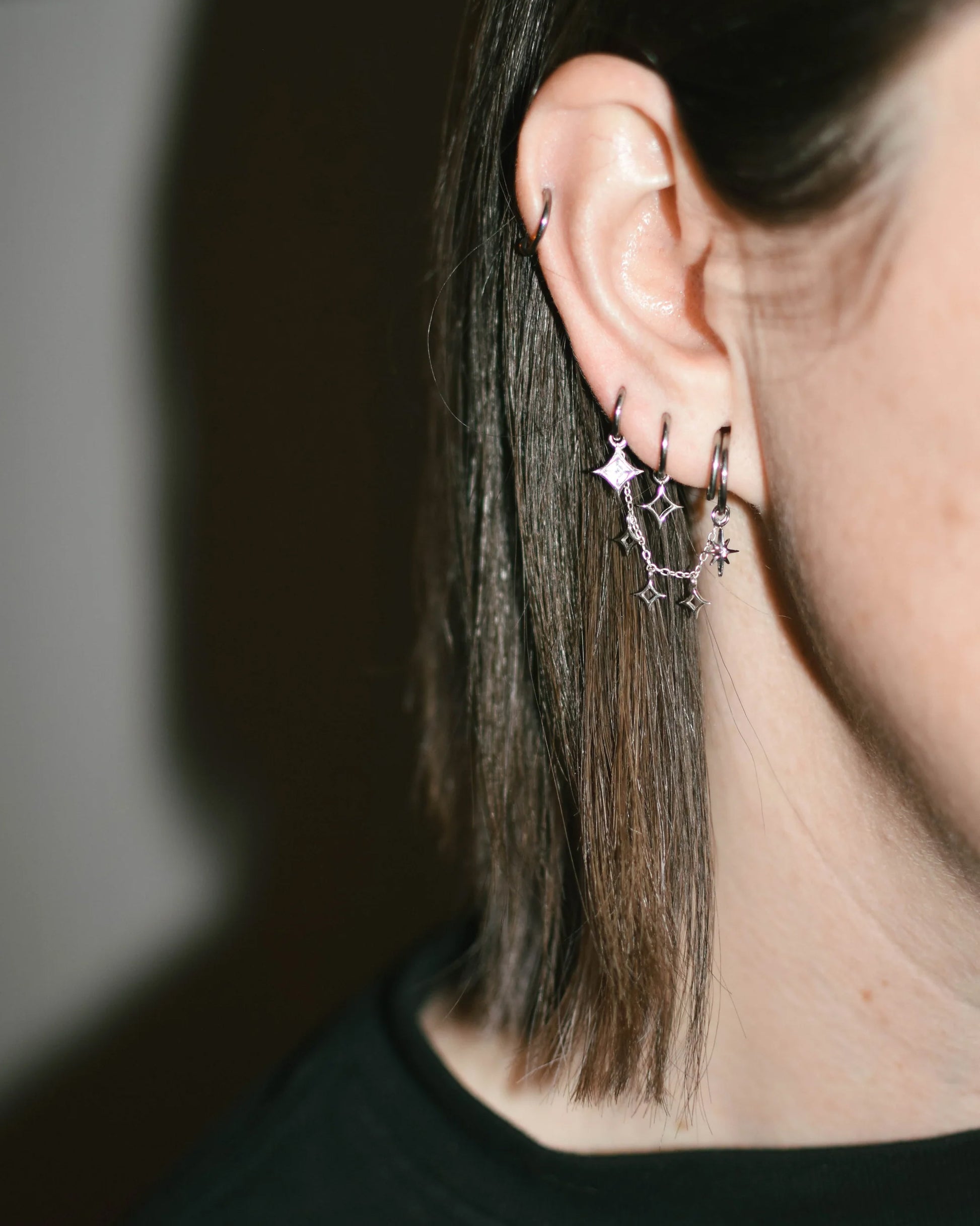 Materials: Base Metal Implant Grade Titanium + 14k Gold Plating, Sterling Silver