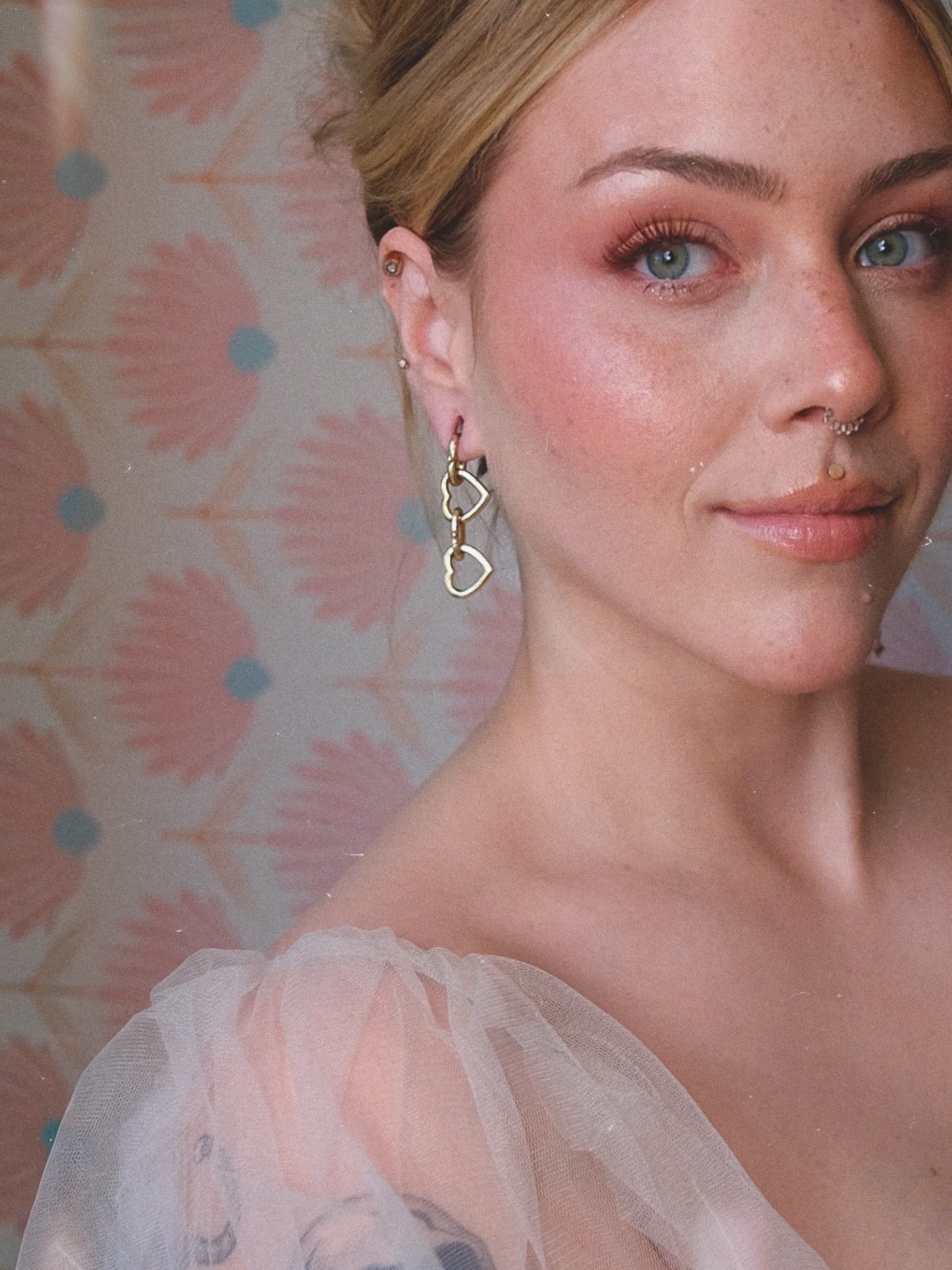 A delicate declaration of love for your lobes. Our Heart Chain Ear Weights come in brass or a silver plating and features a completely detachable clicker; Making this piece wearable as the full set or solo. Dainty, polished hearts suspended from our celestial, embellished chains create a subtle movement with every step and the light weight design allows for all day comfort. Which is the perfect go to for the non-traditional nearlywed, bride to be, groom... broom* or for whatever occasion you're feeling. (We don't judge, pinky promise!)