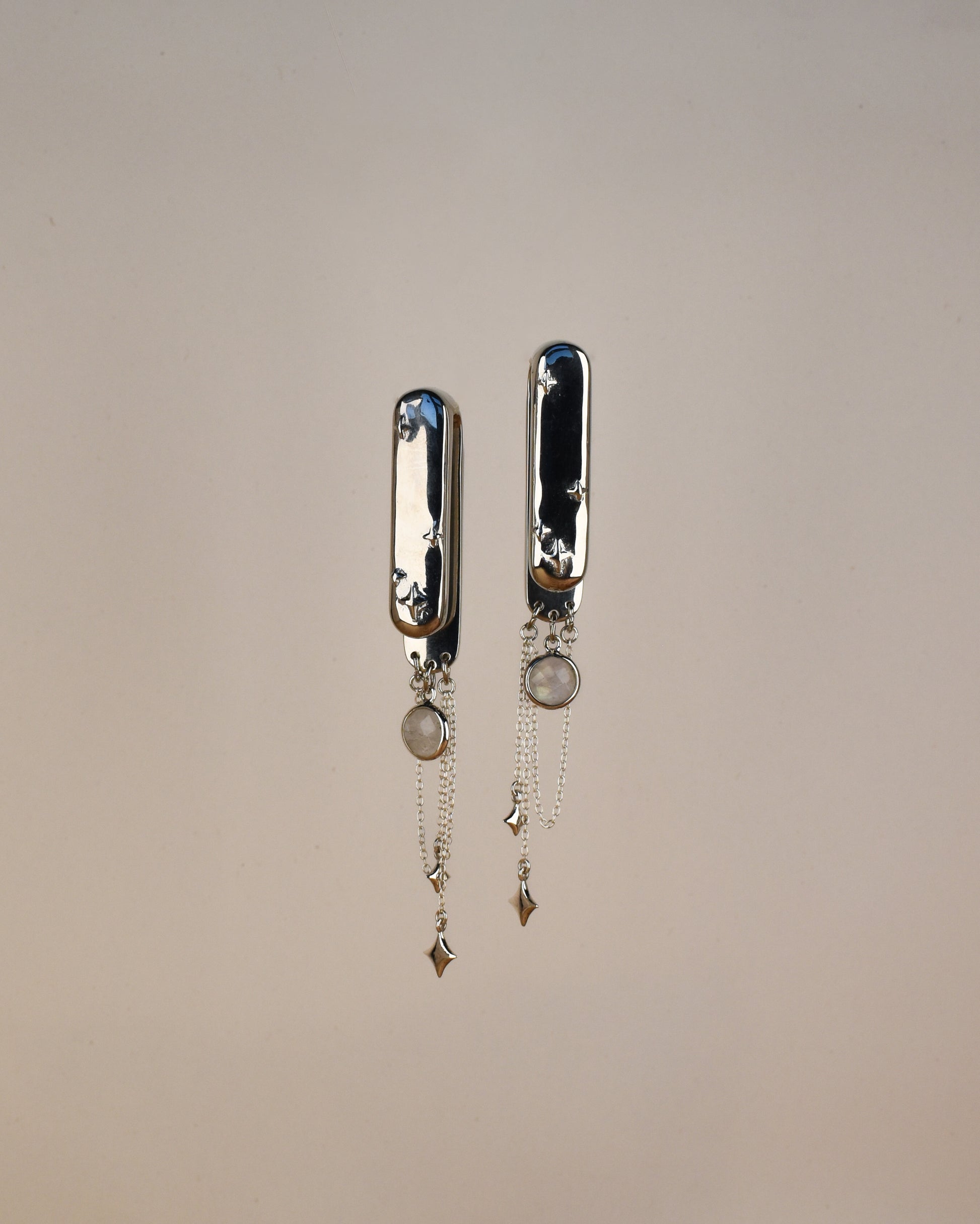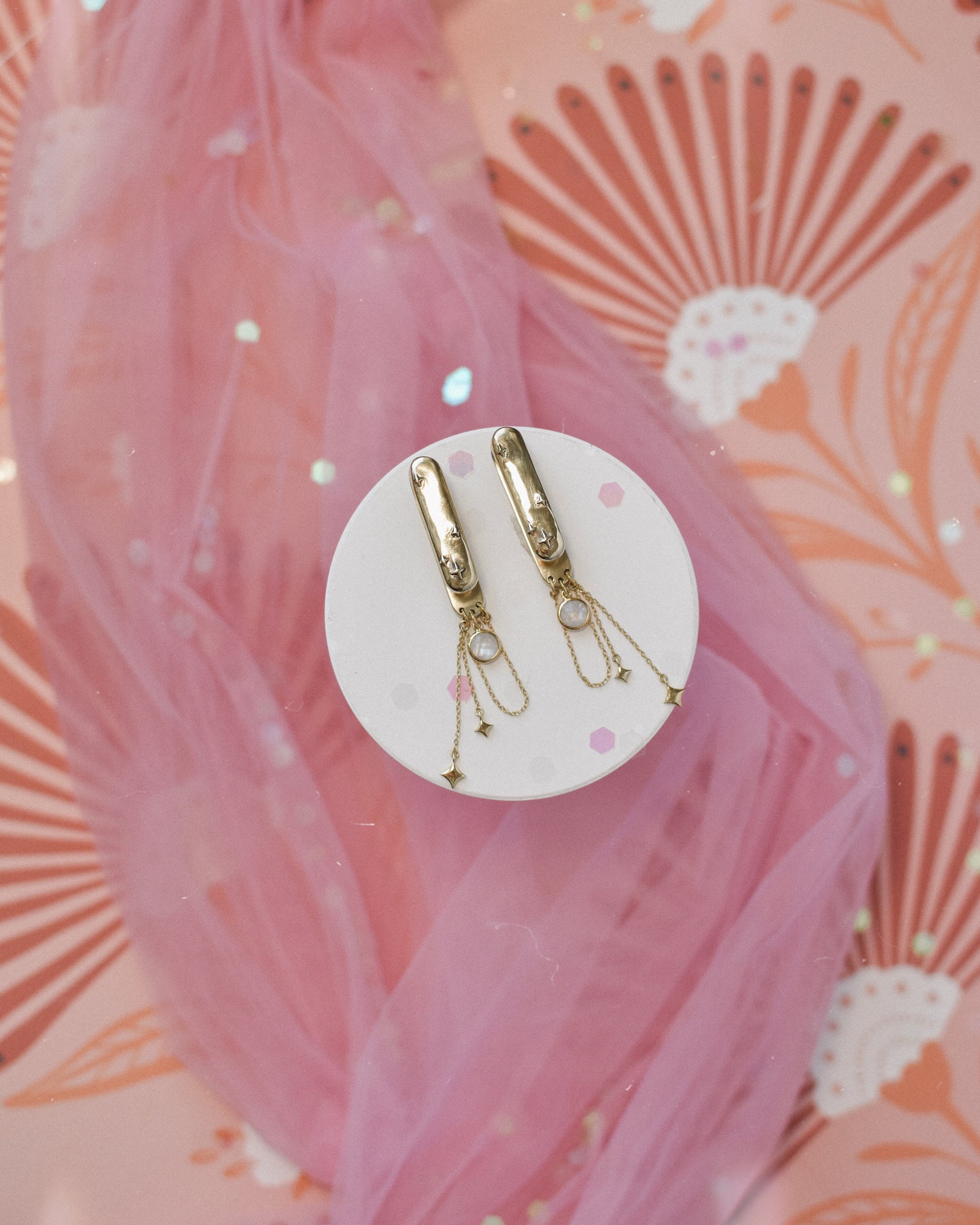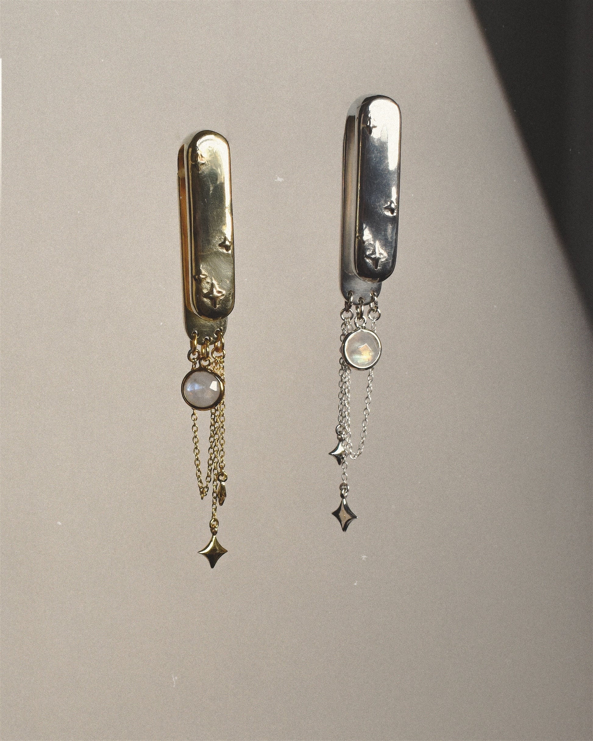 Okay, so these ear weights are our absolute favourite! They've got delicate chains, charms, moonstone and celestial embellishments paired with a snug style design. This ensures your stretched lobes are comfy all day and feeling secure. We designed these weights specifically for all you alternative nearlyweds, brides, grooms + broom's big day! (We are incredibly nosey and would absolutely love to see photos of you in these weights!)